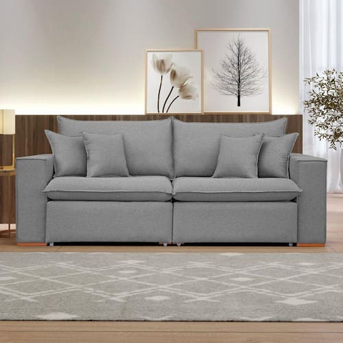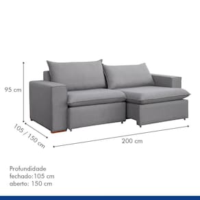 Sofá Retrátil 200cm Barcelona Linho/Cinza