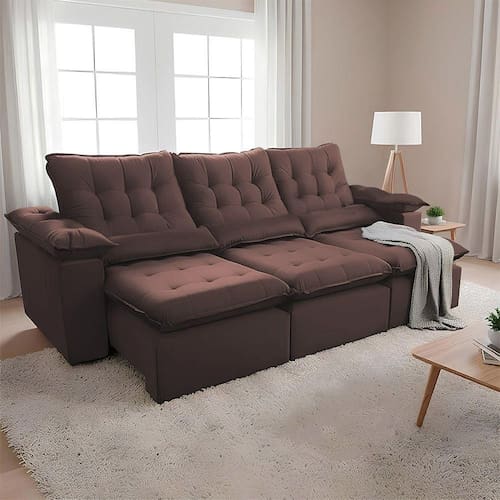 ATENÇÃO: IMAGENS MERAMENTE ILUSTRATIVAS. AS CORES PODEM VARIAR DE ACORDO COM A TELA, MONITOR, ILUMINAÇÃO DO AMBIENTE OU PERCEPÇÃO VISUAL.Sofà RetrÃtil 2.30m Suede Superior Estrutura ReforÃada e Sistema de Alta Abertura Europa Marrom