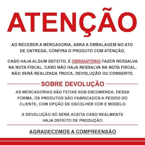 Para manter o produto sempre bonito, recomenda-se a limpeza com pano levemente umedecido, sem uso de produtos abrasivos.
