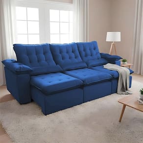 ATENÇÃO: IMAGENS MERAMENTE ILUSTRATIVAS. AS CORES PODEM VARIAR DE ACORDO COM A TELA, MONITOR, ILUMINAÇÃO DO AMBIENTE OU PERCEPÇÃO VISUAL.Sofà RetrÃtil 2.50m ReclinÃvel Master Suede Super Macio e Conforto de Sala Grande Europa Azul