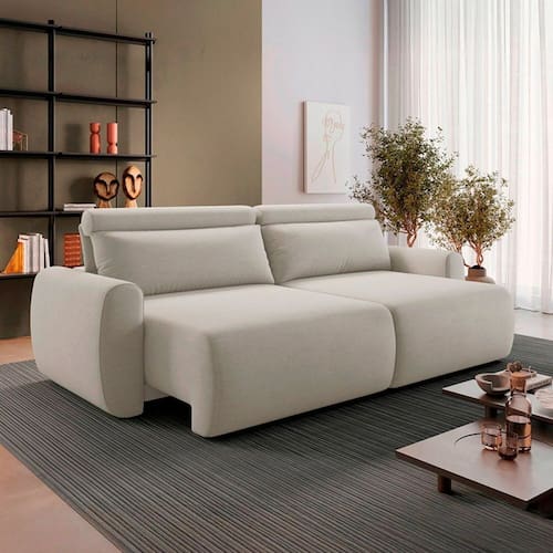 Produto feito com madeira de reflorestamento e revestido com Linho 100% poliéster. Assentos retráteis com mecanismo metálico molas de aço e com 16cm de Espuma Contínua S/A D28 Supersoft e manta de fibra de silicone. Encostos reclináveis com catraca blindada de 7 posições diferentes Almofadas soltas com enchimento de fibra de silicone. Almofada rolinho de espuma costurada no encosto com 2 opções de uso; Costura FREE (livre de puxões e sem desenho no assento e encosto); Possui pés de madeira maciça. Rodinhas de silicone para apoio do módulo retrátil; Produto Montado: Sim Acompanha Almofadas extras: Não Almofada do assento: Fixa Almofada do encosto: Removível Altura do assento até o chão: 46.0000 Altura do Encosto: 61 cm Ambiente Principal: Sala de Estar codigo_ean: 7908007825219 Complexidade da Montagem: Baixa: pode ser montado por uma pessoa sozinha Cor: Bege Claro Cor do Produto: Bege Claro Densidade do Assento: D-28 Enchimento do Assento: Espuma Estilo de Braço: Braços Redondos Firmeza do Assento: Macio Informações Complementares: Almofada rolinho de espuma costurada no encosto com 2 opções de uso Itens Inclusos: 1 Sofá Linha ou Coleção: City Manual de Montagem e Instalação: https://product-hub-prd.madeiramadeira.com.br/263911500/documents/0a85bc2f-66b7-4730-a88a-851b26468db6314307919017552914942221.pdf Marca: Estofart Material da Corrediça do Sofá: Aço/Metal Material dos Pés: Madeira Montagem Flex: Não Necessita Montagem: Sim Origem do Produto: Nacional Peso: 76 kg Pet Friendly: Não Porta Copos: Não Possui Baú: Não Possui Entrada USB: Não Possui Mola: Sim Possui Percintas Elásticas: Sim Possui Pés: 08 Possui Rodízio: Sim Profundidade Quando Estendido: 155 cm Profundidade quando extendido: 155.0000 Quantidade de Estágios do Encosto: 7 Recomendações de Uso, Manutenção e Limpeza: - Não expor ao sol ou fonte de calor; Não utilizar produtos de limpeza como detergente, álcool, solventes, ou produtos químicos; Para a limpeza, utilizar pano umedecido em água, sabão neutro e escova de cerdas macias, deixando secar a sombra. Em caso de excesso de poeira, usar aspirador de pó; Não provocar tensões desproporcionais no assento do sofá, provocadas pro quedas ou pulos; Evitar contatos com animais; Preservar o produto de objetos aquecidos ou pontiagudos; Mantê-lo em local arejado; Não arrastar o sofá pelos braços; Transportar com o máximo de cautela. Rodízio com Trava: Não Sistema de Montagem: Parafusação dos pés na base do sofá e união entre os módulos por engate metálico Suporta Até (kg): 100 kg Tecido Predominante: Linho Tipo de Encosto: Regulável Tipo de Mola: Molas Espirais Tipo de Sofá: Sofá Comum Marca: Não Informado