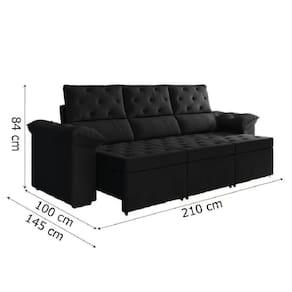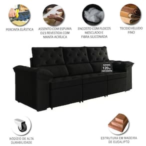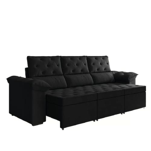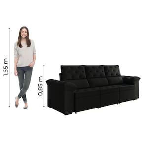 MEDIDAS:: A = 84cm L = 210cm P = 100cm / 145cm (Aberto) | PESO:: 80kg | SUPORTA ATÉ:: 100kg por pessoa | MODELO:: INGLATERRA PRETO | COR:: Preto | TECIDO:: Suede | ASSENTO:: Espuma | ENCOSTO:: Flocos e Fibra | BRAÇO:: Flocos e Fibra | PERCINTAS:: Elásticas | LUGARES:: 3 lugares | ESTRUTURA:: Madeira Eucalipto | ESPUMA:: Sim, D23 | POSSUI ENCOSTO REMOVÍVEL:: Sim | TIPO DE SOFÁ:: Retrátil | POSSUI RODIZIO:: Sim | PÉS:: Sim | MATERIAL DOS PÉS:: PVC | DIFERENCIAL:: Produto de alta qualidade, conforto e durabilidade | GARANTIA:: 3 meses | PRODUTO:: Sofá retrátil | EMBALAGEM:: 2 | QUANTIDADE DE LUGARES:: 3 | TIPO DO SOFÁ:: SOFÁ EM L Cor: Preto