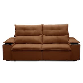 Um móvel que combina conforto, beleza e praticidade! Conheça o Sofá Retrátil 3 Lugares com Porta Copo 210cm Malta F05 Veludo Terracota, da Mpozenato.