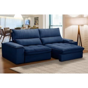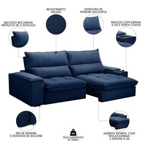 Você está procurando um sofá que ofereça o máximo de conforto e praticidade para a sua Sala De Estar? Então você precisa conhecer o Sofá Retrátil 3 Lugares com Porta Copo 250cm Andes F05 Veludo Azul, da Mpozenato um produto de alta qualidade e design moderno.