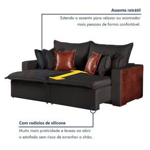 Sofá Retrátil 4 Lugares 200cm Siena Preto