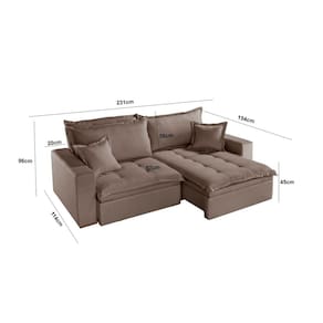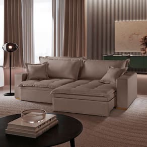 O Sofá RETRATIL MESSINA C/ BAÚ é perfeito para o seu lar. Fabricado com material de alta qualidade retrátil , possui estrutura em madeira eucalipto reflorestada. Assento retrátil com estrutura de ferro, com pillow de 10 cm, espuma de densidade D-26, coberto com manta acrílica TNT resinado . O revestimento em tecido linho e pés de madeira. Sistema de articulação de molas em seu baú e forrado em TNT. Vai deixar o ambiente muito mais aconchegante e perfeito para relaxar a descansar. Acompanha Almofadas extras: 02 Almofada do assento: Fixa Almofada do encosto: Removível Altura do assento até o chão: 45 cm Altura do Encosto: 56 cm Altura dos Pés: 2,5 cm Ambiente Principal: Sala de Estar Bipartida: Sim codigo_ean: 7900288237217 Cor: Marrom Claro Avelã Cor do Produto: Marrom Claro Avelã Densidade do Assento: D-26 Enchimento do Assento: Espuma Estilo de Braço: Braços Largos Firmeza do Assento: Médio Gramatura do Tecido: 200 g/m² Informações Complementares: PRODUTO PARA INTERIOR , NÃO EXPOR A LUZ SOLAR DIRETA Itens Inclusos: 1 Sofá e 2 Almofadas Largura do Braço: 20 cm Linha ou Coleção: Messina Manual de Montagem e Instalação: https://cdn2.madeiramadeira.com.br/atributo/luxury-estofados/3226279-1745-17585615180874.pdf Marca: Luxury Estofados Material da Corrediça do Sofá: Aço/Metal Material dos Pés: MADEIRA PINUS Montagem Flex: NAO Necessita Montagem: Não Nível de Conforto: Intermediário Origem do Produto: Nacional Peso: 106 kg Peso Suportado por m²: 60 kg/m² Pet Friendly: Não Porta Copos: Não Possui Baú: Sim Possui Entrada USB: Não Possui Mola: Não Possui Percintas Elásticas: Sim Possui Pés: 04 Possui Rodízio: Sim Profundidade Quando Estendido: cm Quantidade de Itens: 2 Recomendações de Uso, Manutenção e Limpeza: LIMPEZA A SECO Revestimento do Braço: Tecido Rodízio com Trava: SIM Suporta Até (kg): 120 kg Tecido Predominante: Linho Tipo de Encosto: Fixo Tipo de Mola: Não Possui Tipo de Sofá: Sofá com Chaise Marca: Não Informado