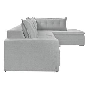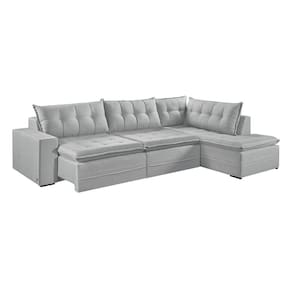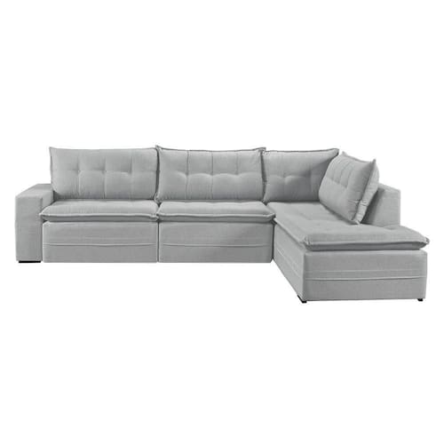 Sofá Retratil Com Chaise Direita Titan 6 Lugares 2,96m Tecido Linho Cor Gelo 2322