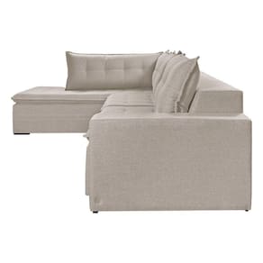 Sofá Retratil Com Chaise Esquerda Titan 6 Lugares 2,96m Tecido Linho Cor Cru 2320 - Blush