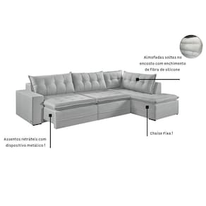 Medida do Produto Montado: Altura: 95 cm | Largura: 316 cm/Chaise 91 cm | Profundidade: 110 cm/Chaise 225 cm - Medida Fechado