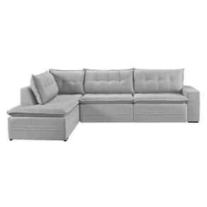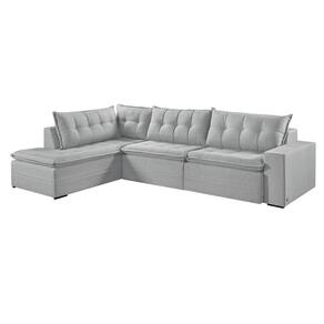 Sofá Retratil Com Chaise Esquerda Titan 7 Lugares 3,56m Tecido Linho Cor Gelo 2322