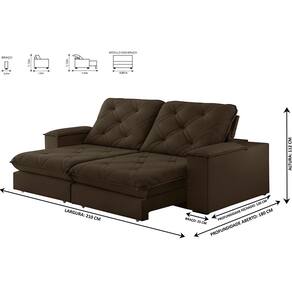 Dimensões: Altura: 112 cm Largura: 210 cm Profundidade Fechado: 120 cm Profundidade Aberto: 180 cm -com encosto reclinado- Peso: 94 kg