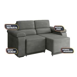 Sofá Retrátil Desmontável Suede 2 Lugares Fox Cinza Cinza