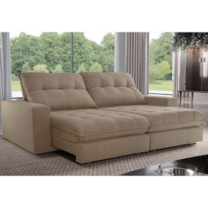 Características Tipo: Sofá 4 lugares Retrátil e Reclinável Marca: TXR Modelo: Dublin Estrutura: Madeira de origem certificada, Eucalipto Revestimento: Em tecido Veludo Bege Pés: Em madeira reflorestada Assento: Retrátil Pillow de molas ensacadas com espuma D28 Encosto: Reclinável em 5 estágios, 100 fibra de silicone Braços: 25 cm Rineira: Almofada de fibra de silicone com zíper Retrátil e Reclinável: Com mecanismo em aço