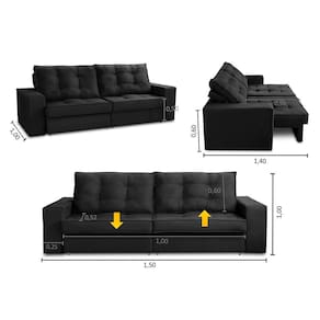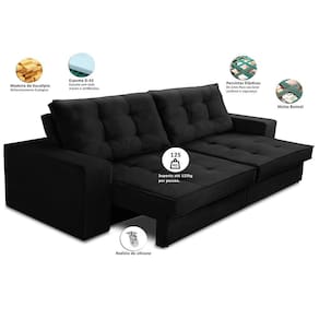 Sofá Retrátil e Reclinável 2 lugares 1,50m com Molas Giovana Suede Preto Madelina Decor