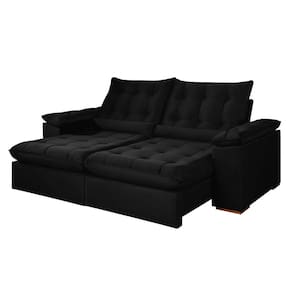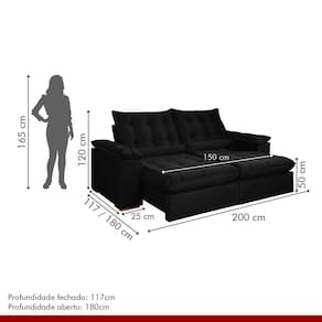 O Sofá Retrátil e Reclinável Dubai da Kasacomigo Estofados é a escolha ideal para quem busca conforto e sofisticação. Seu design moderno adapta-se a qualquer ambiente, enquanto o sistema retrátil e reclinável permite ajustar o assento para um relaxamento personalizado. Feito com estofado de alta qualidade, garante durabilidade e um toque macio. Transforme sua sala em um espaço acolhedor e elegante, oferecendo momentos de descanso incomparáveis. Produto Montado: Sim Acompanha Almofadas extras: Não Almofada do assento: Fixa Almofada do encosto: Fixa Altura do assento até o chão: 50.0000 Altura do Encosto: 93 cm Altura dos Pés: 2,5 cm Ambiente Principal: Sala de Estar codigo_ean: 7909903717875 Complexidade da Montagem: Baixa: pode ser montado por uma pessoa sozinha Cor: Preto Cor do Produto: Preto Densidade do Assento: D-26 Enchimento do Assento: Espuma Enchimento do Encosto: Fibra Siliconada Firmeza do Assento: Firme Itens Inclusos: 1 Sofá e manual de instrução Linha ou Coleção: Dubai Material dos Pés: Eucalipto Necessita Montagem: Sim Peso: 77,4 kg Pet Friendly: Não Possui Percintas Elásticas: Sim Possui Pés: 08 Possui Rodízio: Sim Recomendações de Uso, Manutenção e Limpeza: Limpeza com pano macio e levemente umedecido. Não utilizar solventes a base e de inflamáveis. Não utilizar produtos abrasivos. Revestimento do Braço: Veludo Rodízio com Trava: Não Sistema de Montagem: Encaixe. Suporta Até (kg): 120 kg Tecido Predominante: Veludo Tipo de Encosto: Regulável Marca: Kasacomigo Estofados