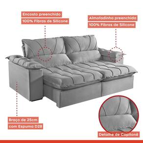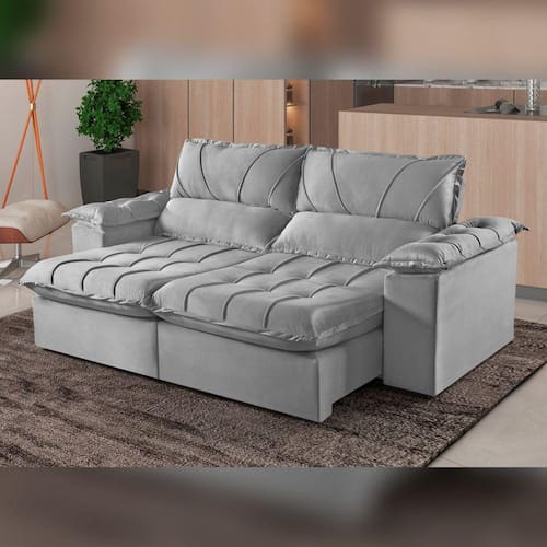 Escolher um bom sofá faz toda a diferença na sala de estar, não é? Para deixar seu ambiente receptivo e bem decorado, aposte no modelo M178! Ele conta com assento retrátil e encosto reclinável, que são ótimos na hora de esticar as pernas e curtir um filminho, tirar uma soneca depois do almoço ou simplesmente relaxar após um dia atarefado. E, para proporcionar mais aconchego aos seus momentos de lazer, é revestido em Veludo, tecido que confere maciez ao toque. Tudo isso composto em um visual clássico que destaca a coloração sóbria e torna o móvel fácil de harmonizar com os outros itens do cômodo. Daí, é só juntar todo mundo e curtir seu lar-style acolhedor ;) Acompanha Almofadas extras: Não Almofada do assento: Fixa Almofada do encosto: Fixa Altura do assento até o chão: 64 Altura do Encosto: 37 Altura dos Pés: 2.5 Ambiente Principal: Sala de Estar Complexidade da Montagem: Baixa: pode ser montado por uma pessoa sozinha Cor: Cinza Cor do Produto: Cinza Densidade do Assento: D-28 Densidade do Encosto: D-18 Enchimento do Assento: Espuma Enchimento do Encosto: Fibra Siliconada Estilo de Braço: Braços Pillow Top Firmeza do Assento: Firme Informações Complementares: Densidade De 28 Soft Itens Inclusos: 1 Sofá Material dos Pés: Madeira Necessita Montagem: Sim Origem do Produto: Nacional Peso: 119.5 Pet Friendly: Não Possui Percintas Elásticas: Sim Possui Pés: 04 Possui Rodízio: Sim Profundidade Quando Estendido: 160 Recomendações de Uso, Manutenção e Limpeza: Limpar com pano limpo e seco ou levemente umidecido em água. Limpeza também poderá ser realizada com aspirador de pó. Não utilizar produtos químicos. Revestimento do Braço: Veludo Rodízio com Trava: Não Sistema de Montagem: Encaixe Suporta Até (kg): 120 Tecido Predominante: Veludo Tipo de Encosto: Regulável Tipo de Mola: Molas Ensacadas (Molas ensacadas) Marca: Estofados Martins Ean: 7909903331545