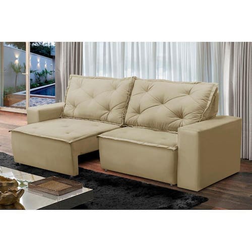 Sofá Retrátil e Reclinável 2 lugares com Molas 1,50m Ana Suede Bege Adonai Estofados
