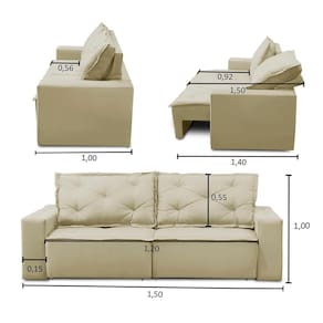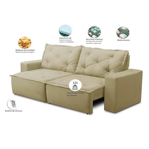 Assento:Feito com espuma D-28 com percintas elásticas de 5mm e Molas, o assento é retrátil que permite você utilizar o sofá com as pernas esticadas e ter todo o conforto que ele possa te proporcionar.