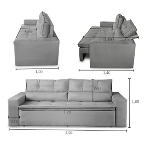 Assento: Feito com espuma D-28 com percintas elásticas de 5mm e Molas, o assento é retrátil que permite você utilizar o sofá com as pernas esticadas e ter todo o conforto que ele possa te proporcionar.