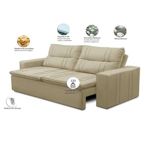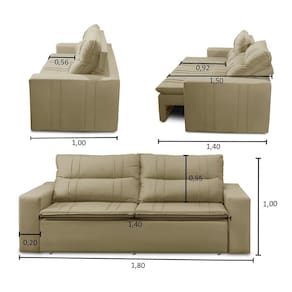 Assento: Feito com espuma D-28 com percintas elásticas de 5mm e Molas, o assento é retrátil que permite você utilizar o sofá com as pernas esticadas e ter todo o conforto que ele possa te proporcionar.