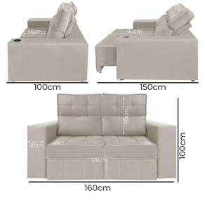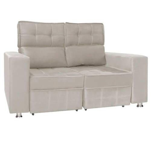 Sofá Retrátil e Reclinável 2 Lugares Londres 1.60cm C/Molas - Veludo - Bege Claro