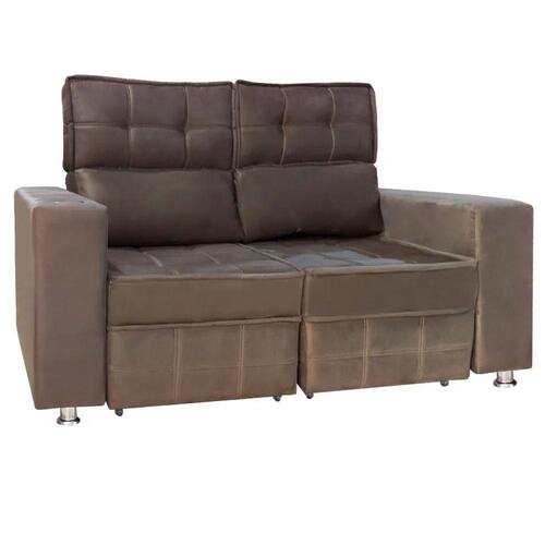 Sofá Retrátil E Reclinável 2 Lugares Londres 1.60cm Com Molas Suede Speciale Home Marrom O sofa Londres e retratil e reclinavel, ideal para quem busca conforto. Possui estrutura de madeira e assento e encosto revestidos em tecido macio, que proporciona uma agradavel sensacao ao toque. E reclinavel, o que permite ajustar a posicao de acordo com as necessidades, e retratil, o que facilita o manuseio. Caracteristicas do Produto: Material da Estrutura: Madeira de eucalipto (Reflorestamento) Assento em Espuma: D-20 Encosto em Espuma: Fibra Siliconada com Flocos Bracos em Espuma: D-12 Possui 4 Pes de PVC com pintura cromada. Sustentacao do encosto e assento com Percintas elasticas. Bracos com chapa de mdf Fixacao com grampos Galvanizados Encosto Removivel Mecanismo Retratil no assento Catraca no encosto Rodizios em gel