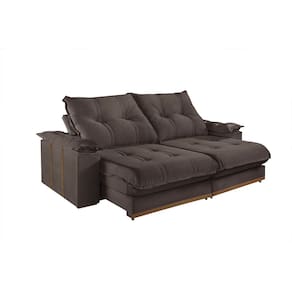 Caracteristicas: Sofa Marca: Martins Estofados Modelo: M-193 Tipo: Retratil e reclinavel Tipo de Tecido: Veludo Assento: Espuma D-28 Soft com molas ensacadas e pillow de 30 cm Encosto: Reclinavel com catraca de 5 estagios e preenchido com fibra de silicone Bracos: Revestidos com espuma D-28 firme e pillow de fibra de silicone Revestimento: Espuma D-28 Soft Estrutura: Madeira de eucalipto tratada, aparelhada Sustentacao: Percintas elasticas Pes: Madeira macica Pinus/Sinamomo Rodizios: 4 rodizios de silicone incolor Mecanismo retratil: Trilho de tubo pintado Bipartido -facilita transporte e montagem-