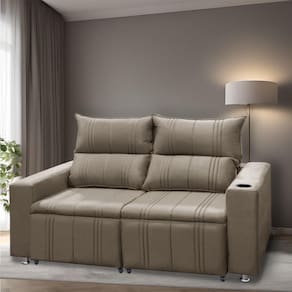 Características do Produto: Material da Estrutura: Madeira de eucalipto -Reflorestamento- Assento em Espuma: D-20 Encosto em Espuma: Fibra Siliconada com Flocos Braços em Espuma: D-12 Possui 4 Pés de PVC com pintura cromada. Sustentação do encosto e assento com Percintas elásticas. Braços com chapa de mdf Fixação com grampos Galvanizados Encosto Removível Mecanismo Retrátil no assento Catraca no encosto Rodízios em gel