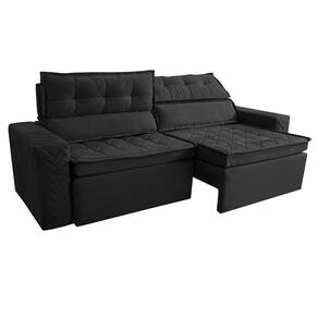 Sofá Retrátil E Reclinável 2,00m Cama Inbox Charm Velusoft Preto