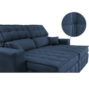 Sofá Retrátil e Reclinável 2,00m Molas Ensacadas e Costura Tripla Cama inBox Nobre. Suede Velusoft - Azul Marinho