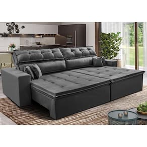 Sofá Retrátil E Reclinável 2,02m Luxos Cama Inbox Velusoft Cinza