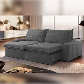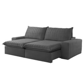 O revestimento em tecido com manta acrílica recebe costura com pesponto duplo, feito com máquinas de ponto eletrônico, proporciona beleza nos desenhos e resistência da costura Acompanha Almofadas extras: Não Almofada do assento: Fixa Almofada do encosto: Fixa Altura do assento até o chão: 56 Altura do Encosto: 60 Altura dos Pés: 2.5 Ambiente Principal: Sala de Estar Complexidade da Montagem: Baixa: pode ser montado por uma pessoa sozinha Cor: Grafite Cor do Produto: Grafite Densidade do Assento: D-28 Densidade do Encosto: D-18 Enchimento do Assento: Hyper Soft Enchimento do Encosto: Fibra Siliconada Estilo de Braço: Braços Quadrados Firmeza do Assento: Macio Itens Inclusos: 1 Sofá, Kit Ferragens e Manual de Montagem Material dos Pés: Madeira Necessita Montagem: Sim Origem do Produto: Nacional Peso: 104.16 Pet Friendly: Não Possui Percintas Elásticas: Sim Possui Pés: 08 Possui Rodízio: Sim Profundidade Quando Estendido: 180 Recomendações de Uso, Manutenção e Limpeza: A limpeza do revestimento deve ser feita com escova ou tecido de algodão branco levemente umedecidos em água morna, sabão neutro ou produto específico. Não usar produtos corrosivos nem a base de solventes, como: cloro, alvejantes, detergentes, entre outros;Não expor o estofado à luz direta. Mantenha portas e janelas sempre protegidas com cortinas e blackout. A exposição contínua à radiação da luz, danifica o revestimento, apodrecendo os fios, trincando a superfície e desbotando as cores;Não lavar o revestimento das almofadas pois pode desfiá-las, abrindo as costuras;Não utilizar o estofado para fins diferentes do que foi projetado: ficar em pé, pular, arrastar, sentar nos braços, peso na caixa traseira, entre outros tipos de ações que poderão danificar o produto. Resistente à Chuva: Não Revestimento do Braço: Veludo Rodízio com Trava: Não Sistema de Montagem: Sim Suporta Até (kg): 120 Tecido Predominante: Veludo Tipo de Encosto: Regulável Tipo de Mola: Molas Espirais Ean: 7908551958777