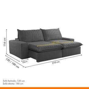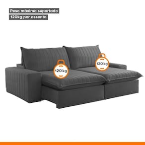 O assento de pillow com espuma elástica e costura matelado. Possui mecanismo retrátil em aço que permite abertura do sofá para seu bem-estar.