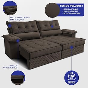 Sofá Retrátil E Reclinável 2,10m Com Molas E Espuma D33 Thunder. Velusoft Cama Inbox Café