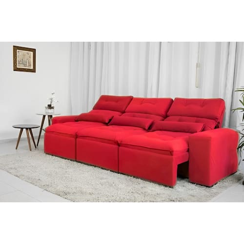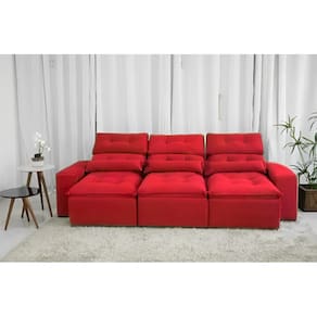 Sofá Retrátil e Reclinável 2,10m em Tecido Suede - Montagem Inclusa - Vermelho