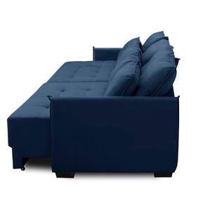Sofá Retrátil e Reclinável 2,10m Mariah Veludo Azul Madelina Decor - Azul Marinho