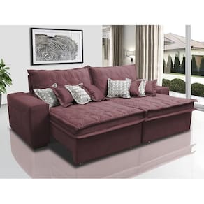 Sofá Retrátil E Reclinável 2,12m Com Molas Ensacadas Cama Inbox Supreme Tecido Suede Velusoft Vinho - Blush