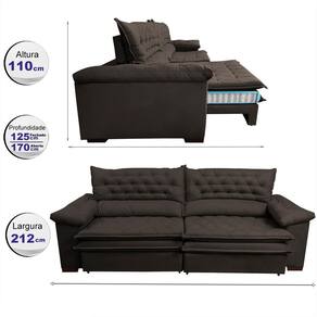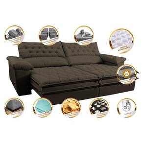 Sofá Retrátil e Reclinável 2,12m Molas Ensacadas Cama inBox Alemanha. com Viscoelástico Velusoft - Marrom