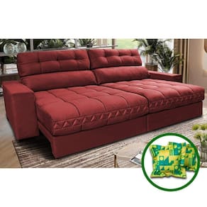 Sofá Retrátil E Reclinável 2,12m Molas Ensacadas Cama Inbox Brasil Velusoft Vermelho