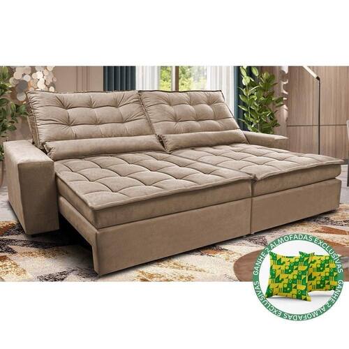 Sofá Retrátil E Reclinável 2,12m Molas Ensacadas Cama Inbox Catar Velusoft Bege
