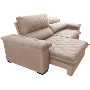 Sofá Retrátil E Reclinável 2,15m Molas Ensacadas Cama Inbox Big Home Com Bordado 3d Velusoft Bege