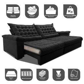 Um modelo exclusivo da Linha BIG, este sofá foi desenvolvido com encostos Mega Gigantes e assentos maiores em relação ao mercado, o Sofá Retrátil e Reclinável Big Space foi desenvolvido para trazer para sua sala charme e elegância, sem falar de seu conforto maravilhoso. Feito com uma estrutura interna resistente, esse modelo conta com a estabilidade necessária para esse tipo de móvel, enquanto o enchimento em espuma D33, Molas Ensacadas de Molejo Duplo e Percintas Extra Suport, dão o suporte necessário para o conforto, sendo perfeito para acomodar você e as pessoas que ama naquela maratona de séries, ou até mesmo para descansarem aos finais de semana. Tenha a sensação de ter um colchão em sua sala com o Sofá Retrátil e Reclinável Big Space!