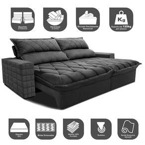 Sofá Retrátil e Reclinável 2,15m Molas Ensacadas Cama inBox Elegance. com ThermoGel Velusoft - Cinza