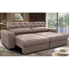 Sofá Retrátil E Reclinável 2,15m Molas Ensacadas Cama Inbox Style Thermo Gel Linho Bege Escuro