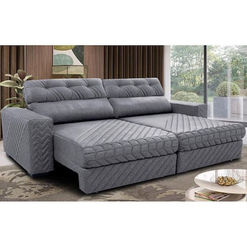 Sofá Retrátil E Reclinável 2,15m Molas Ensacadas Cama Inbox Style Thermo Gel Linho Cinza Claro