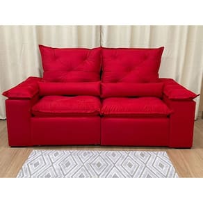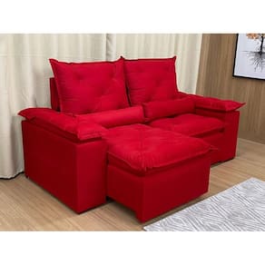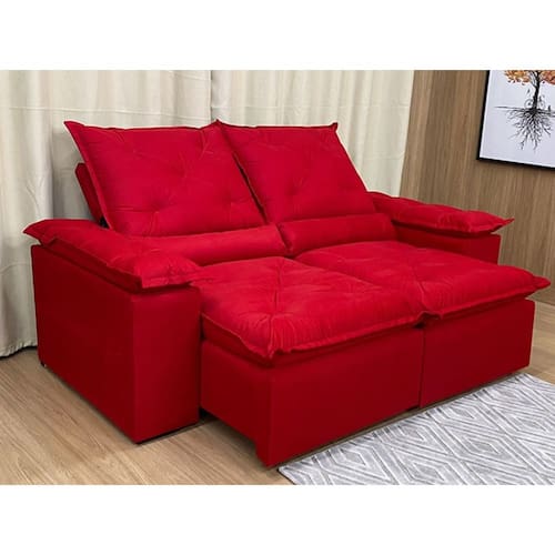 Sofá Retrátil e Reclinável 2,20m em Tecido Veludão C/ Pillow nos Braços Athenas - Vermelho