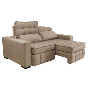 Sofá Retrátil E Reclinável 2,20m Molas Ensacadas E Costura Tripla Cama Inbox Japão Velft Bege