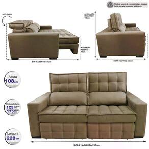 Sofá Retrátil e Reclinável 2,20m Molas Ensacadas e Costura Tripla Cama inBox Japão. Velusoft - Palha