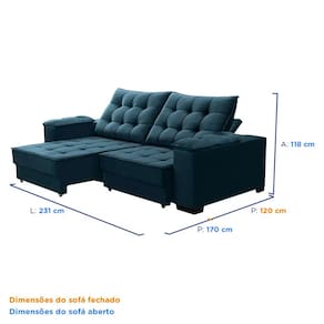Dimensões: Altura: 118 cm Largura: 231 cm Profundidade: 120 cm Peso: 70 kg