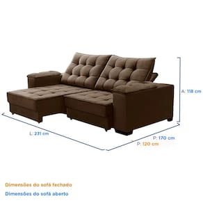 Dimensões: Altura: 118 cm Largura: 231 cm Profundidade: 120 cm Peso: 70 kg